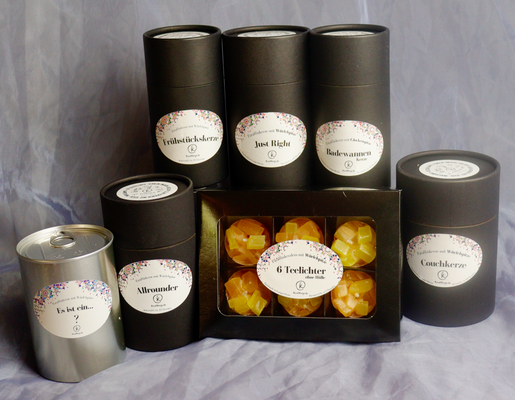 Nach langen Jahren des Suchens wurde ich endlich fündig und nun kann Kunstkerze verpackte Einzelstücke anbieten. FrühstücksKerze, Just Right, Allrounder, Couchkerze, Badewannenkerze & Teelichter biete ich ab diesem Jahr in tiefschwarzen Geschenkpackungen an.