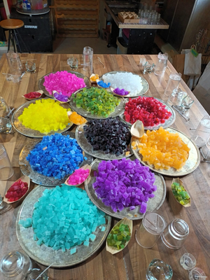 Acht bis zehn Würfelfarben habe ich im Gepäck, wenn Du keine besonderen Wünsche hast. Besondere Wünsche sind völlig okay! Wenn deine Einhornpartygäste nur pink, rosa, lila und maximal türkis akzeptieren, bleiben alle anderen Farben in Neuschloss. Ist deine Mädelstruppe jede