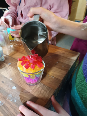 Je nachdem wieviele Kerzen Du mit Deiner Gruppe basteln möchtet, benötigst Du unterschiedlich viel Bastelmaterial. Die Menge des Materials bestimmt den Preis, je mehr Kerzen du herstellen möchtest,