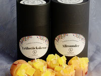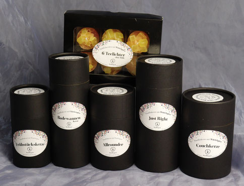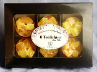 6 verschiedene, bunte Teelichter im Geschenkkarton