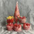 Allrounder "Petrol mit roten Würfeln " in Papier verpackt, Ø 7cm, Höhe: ca. 13 cm